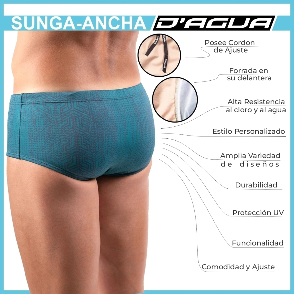 • En comparación con la Sunga Fina, ésta malla es más ancha a la altura de la cadera.