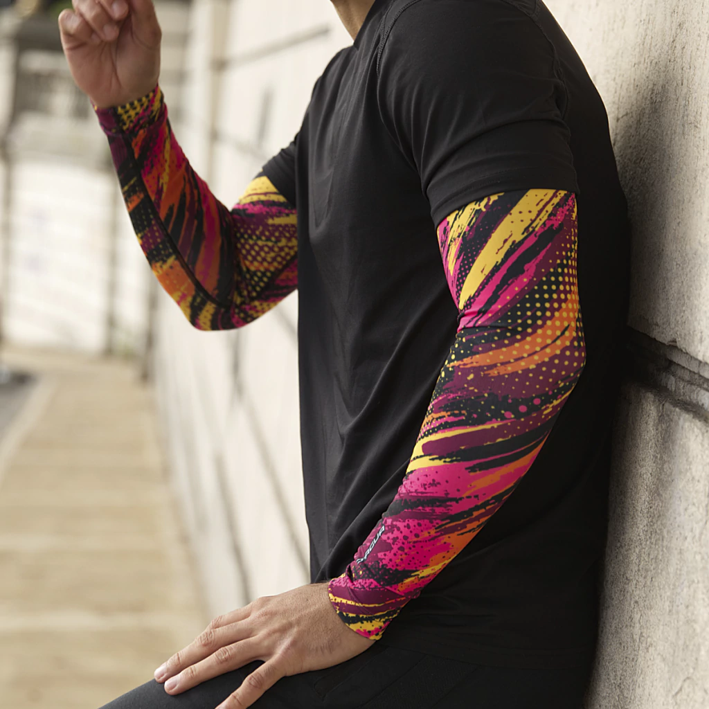 • El POLIESTER la hace cómoda y adherente al brazo y antebrazo manteniendo su color. Se seca rápido y protege de los rayos UV.